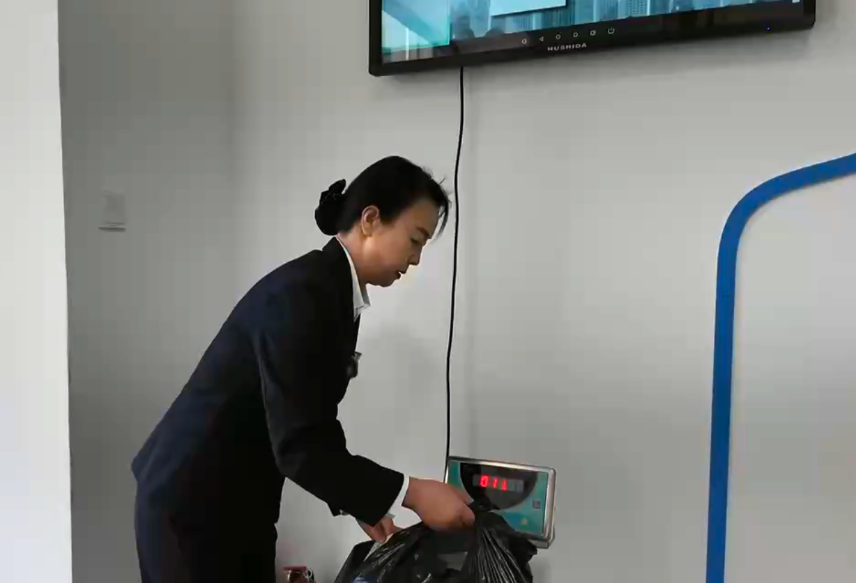 保洁员将分类垃圾放上智能电子秤,刷卡上传垃圾的“云账单”。